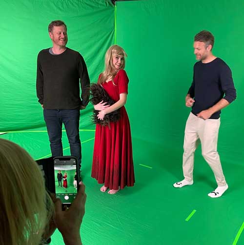 -Gode skuespillere og kostymer var på plass da Holocap rigget greenscreenstudio i Fosnavåg Konserthus. I løpet av 3 dager spilte vi inn 10 ulike hologram. Disse hologrammene møter du nå i appen Voice Of Norway, smiler Hilde stolt.