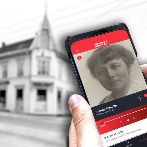 -I min forskning ser jeg at det er byer som slipper til et mangfold av fortellinger, uttrykk og fortellere som får mest ut av sin kultursatsing. Derfor var det så spennende for meg å jobbe med audioguide-formatet, fordi det er et medium som legger til rette for at flere fortellinger kan fortelles samtidig. Det pirrer selvsagtnysgjerrigheten til regissøren og dramaturgen i meg, og etter et halvt år med grubling og planlegging har vi nå planlagt et løypenettverk av byens fortellinger som skal gjøres tilgjengelig gjennom appen Voice Of Norway. Det er fantastisk at dette er tilgjengelig for alle til enhver tid – helt gratis.